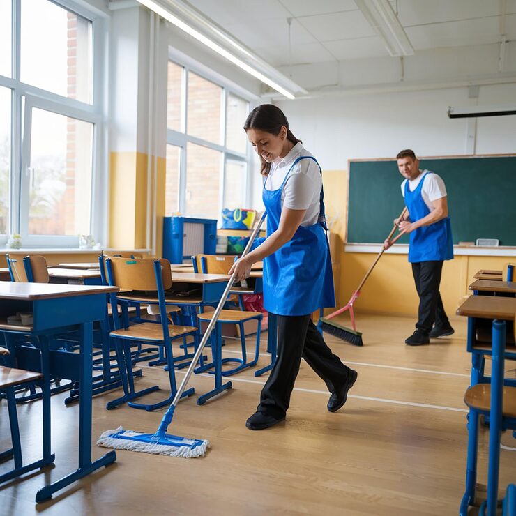 Professional cleaning for classrooms, restrooms, and common areas to maintain safe learning environments.